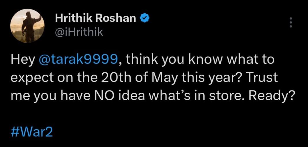 Hrithik’s post read: “Hey @tarak9999, think you know what to expect on the 20th of May this year? Trust me you have NO idea what’s in store. Ready?”