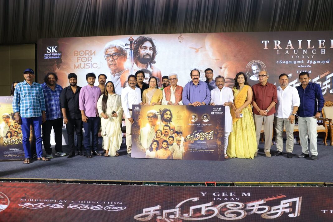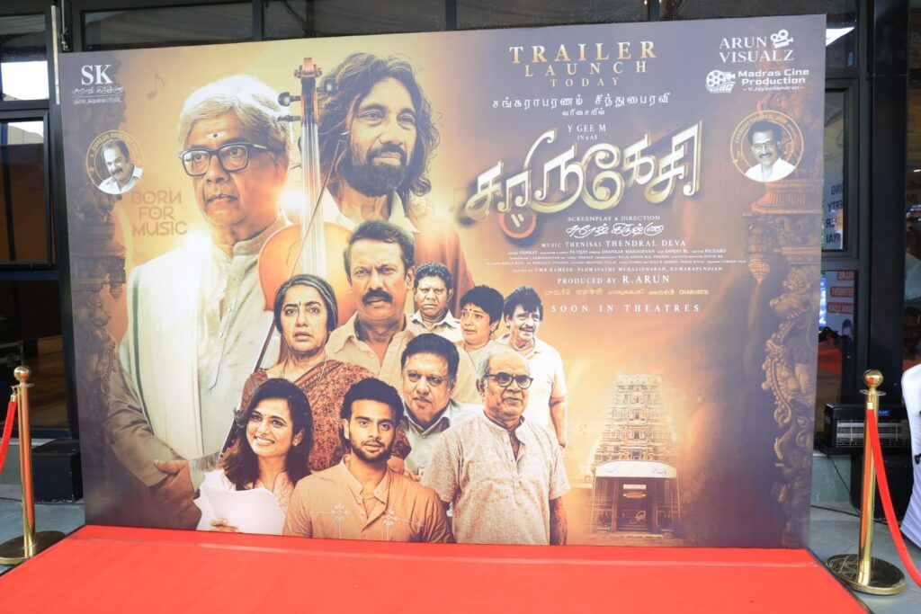 The trailer launch event of Charukesi was held in Chennai with great fanfare, marking a momentous occasion for Tamil cinema. The film features legendary actor Y.Gee. Mahendra in a pivotal role and boasts a stellar ensemble cast that includes Sathyaraj, Samuthirakani, Suhasini Mani Ratnam, Thalaivasal Vijay, Ramya Pandian, Raj Ayyappan, Madhumathi, Livingston, Jayaprakash, and many more.