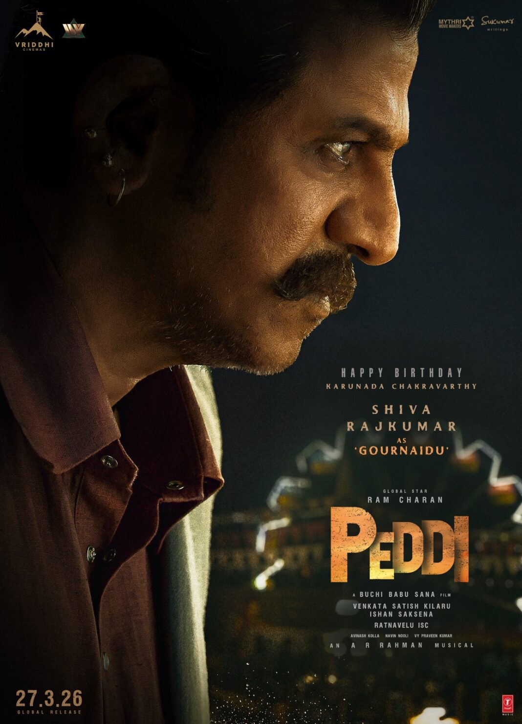 Meanwhile the makers wishing the actor on his birthday unveiled the first look of Kannada superstar Shiva Rajkumar who is playing a pivotal role in the movie. With a fierce stare, thick handlebar moustache, and rugged demeanor, Shiva Rajkumar brings a commanding presence to Peddi that elevates the film’s intensity. His character, Gournaidu, is portrayed as a figure of immense power and authority.