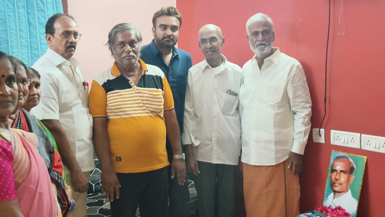 பூவை செங்குட்டுவன் இல்லத்திற்கு சென்று அவரது திருவுருவப்படத்திற்கு அமைச்சர்கள் அஞ்சலி