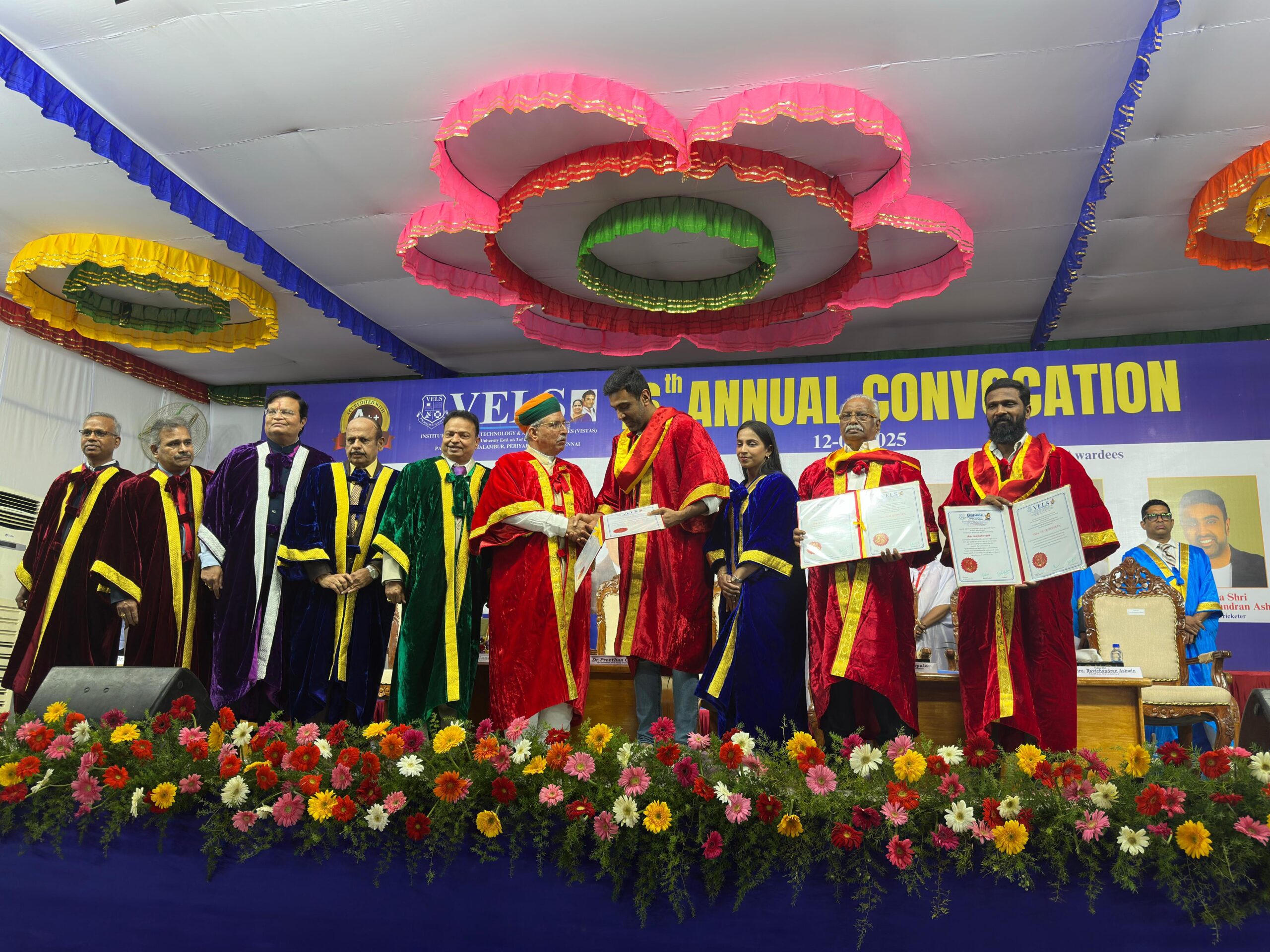 Cricketer Ravichandran Ashwin, Film Maker Vetrimaaran, and Entrepreneur & Philanthropist A.M. Gopalan Honoured with Doctorates at Vels Institute of Science, Technology and Advanced Studies Convocation