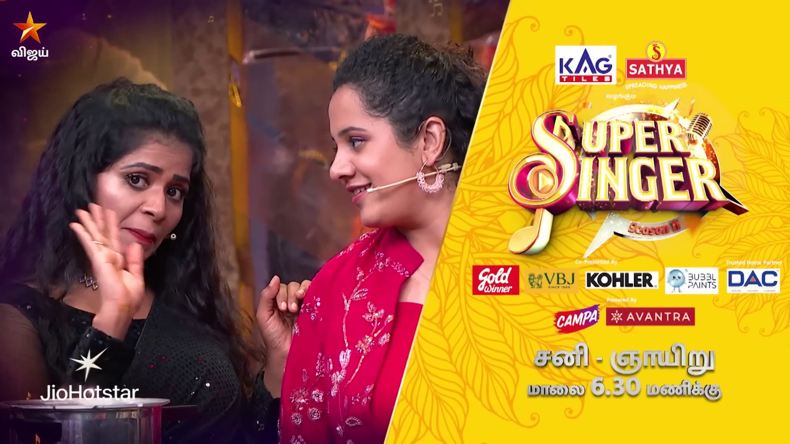 “சூப்பர் சிங்கர் சீசன் 11 & குக் வித் கோமாளி மெகா சங்கமம்”, வரும் செப்டம்பர் 21 மற்றும் 22 தேதிகளில் சனி, ஞாயிறு கிழமைகளில், மாலை 6.30 மணிக்கு, விஜய் தொலைக்காட்சி மற்றும் ஜியோ ஹாட்ஸ்டார் தளத்தில் கண்டுகளியுங்கள் !!