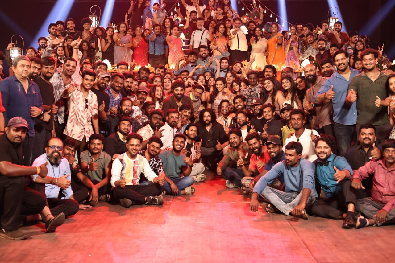 The much-anticipated film MARK, starring Kichcha Sudeep, has successfully completed its shoot. The final schedule featured a grand song sequence filmed on a massive 200-foot-long ship set, bringing together over 100 artists and 300 junior artists for a spectacular visual treat.