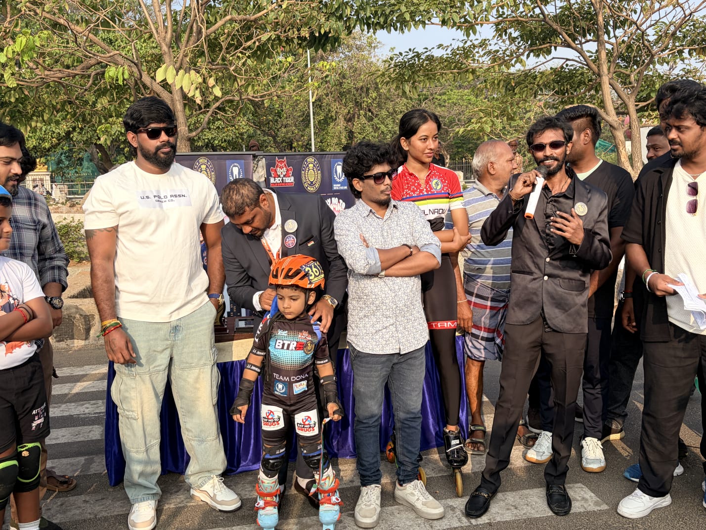 அதையடுத்து சாதனை நிகழ்த்திய சிறுவனுக்கு அங்கீகார சான்றிதழை வழங்கிய ’இந்தியன் புக் ஆஃப் வேர்ல்ட் ரெக்கார்ட்’ அமைப்பின் எம்.டி.சதாம் ஹுசேன், சாதனை சிறுவனுக்கு வாழ்த்து தெரிவித்து அவருக்கு பயிற்சியளித்து வரும் BLACK TIGER Roller Skating Academy’யின் நிறுவனர் டோனா சதீஷையும், ஊக்கப்படுத்தும் சிறுவனின் பெற்றோரையும் பாராட்டினார். ”உலக வரலாற்றில் இத்தனை சிறுவயதில் இதுபோன்ற சாதனையை யாரும் செய்ததில்லை” என குறிப்பிட்ட அவர் ”இப்படியான சாதனையாளர்களை தமிழக அரசு ஊக்குவிக்க வேண்டும், சாதனையாளர்கள் உருவாக தேவையான வசதிகளை உருவாக்கிக் கொடுக்க வேண்டும் என விளையாட்டுத்துறை அமைச்சர் உதயநிதி ஸ்டாலினை கேட்டுக் கொள்கிறேன்” என்றார்.