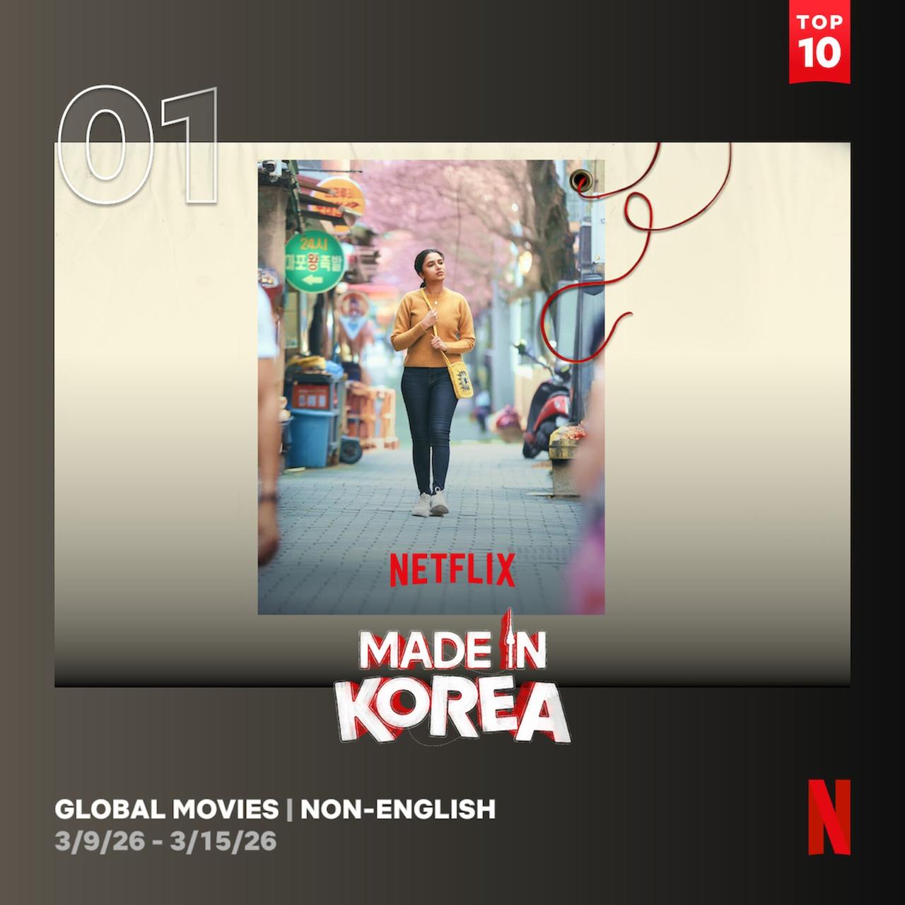 Monika Shergill, Vice-President, Content, Netflix India shares, “We are proud that a story like Made In Korea has become the first ever film from our south slate to land at the no.1 spot on our Global Top 10 Non-English Films list. It reaffirms our belief that there is so much more from India for the world to discover and embrace. This film stands out for blending two distinct cultures into one powerful story that explores universal emotions of love, friendship, belonging and family. At Netflix, we remain committed to championing authentic, locally rooted stories and it’s incredibly exciting to see a film like this travel so widely and connect with audiences around the world.”
